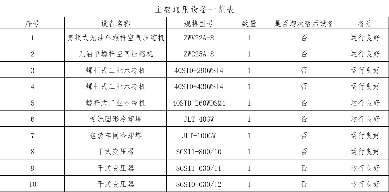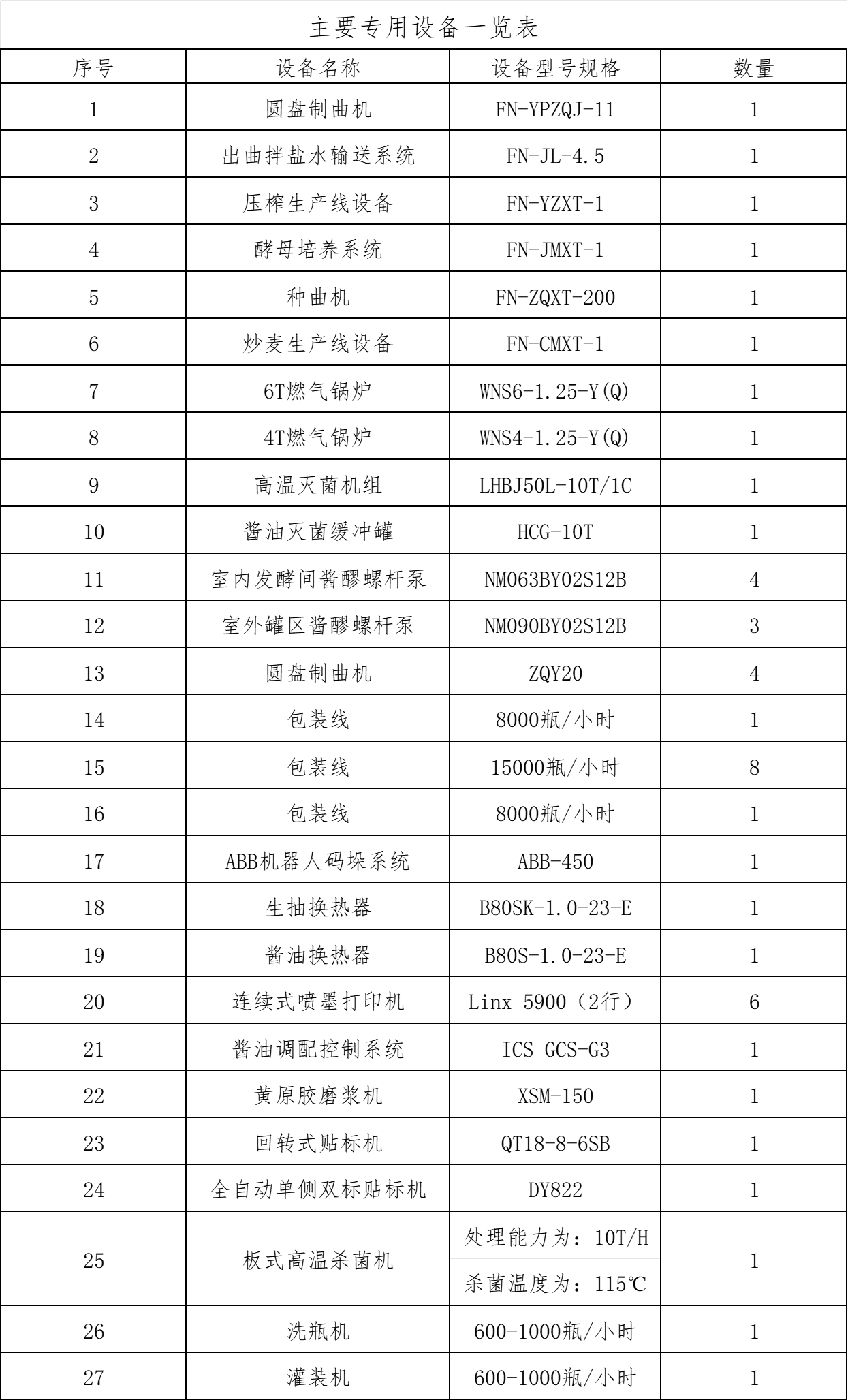 二、主要生產(chǎn)設(shè)備一覽表